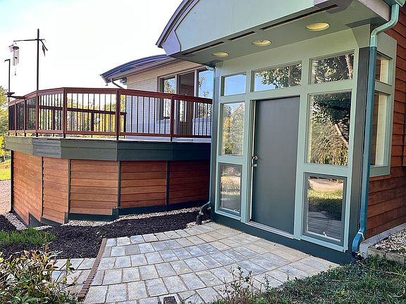 Spacious front and back decks, plus large lower level patio. + Storage annex.
