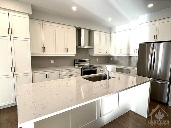 Brand New contemporary executive luxury Semi detached in sought after Wateridge Village! Built by award winning Uniform Urban Developments, designed by Hobin Architecture Inc. 4 bedrooms on 2nd floor. 4 Bathrooms. Fully finished lower level has a large recreation room, and a beautifully finished full bathroom, and extra storage space. Open Concept 9' ceilings. Top quality materials and workmanship, energy efficiency home. Ten minutes to downtown, Parliament, prestigious private school Elmwood and Ashbury. Overlooking the Ottawa River Parkway, beautiful parks, trails. Over $40k upgrades. Entire 2nd floor solid red oak hardwood. Ensuite bathroom designed and upgraded to double sink vanity. Second floor laundry with upgraded top quality washer/dryer. Modern kitchen professionally designed with island, quarts countertop, upgraded backsplash and plenty of cupboard space. An abundance of natural light and an entertainment sized living-dining area with gas fireplace. Central air conditioning.