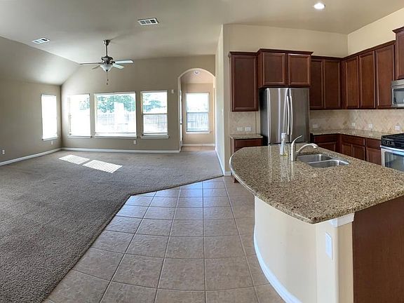 Gehan home (Mahagony) with wide open floor plan on big cul-de-sac. Features include granite counters, SS appliances, and separate shower and garden tub in master bath. Laundry room connects to master closet. Huge back yard. Lease will include white, faux wood blinds and SS refrigerator. New park is walking distance from house. Refrigerator included in lease. Owner pays HOA fees and property tax.