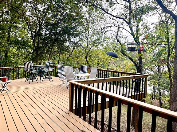 WALK TO THE WATERS EDGE WATER FRONT! This is a 2680 sqft home that has a quiet gentle walk to the waters edge property!!! Enjoy an early morning coffee sitting on the oversize deck that has a rare shady eastern view of the lake. And do you know what comes with a shady eastern deck... also a Shady setting for evening gatherings too!!! This is a very clean and well maintained home with ample room for friends and family. The upstairs has a very large updated kitchen with new appliances in 2019, Wood burning fireplace upstairs and pellet downstairs for cozy comfort on cooler days. Heat pump new in 2019 for efficient electric costs. New roof in 2019, recent exterior paint 1 bedroom and laundry upstairs with the family room, 3 bedrooms with great closet space, a full bath, plus a very large concrete covered dry storage/storm shelter in the walk out basement. Spacious oversized garage, 6500 watt generator with quick disconnect for immediate access in case of power outage. Leaf filter system installed 2022 with transferable warranty. Plus a very accessible 30 x 40 insulated shop for all your lake toys built in 2018.Also, included is a 2nd buildable waterfront lot or keep it as just a buffer for privacy. This home has its own well new in 2021 and an updated septic tank in 2010. All this located at nearly the end of a short private road where the area is quiet and siren. BACK on Market, due to failed contingency offer.