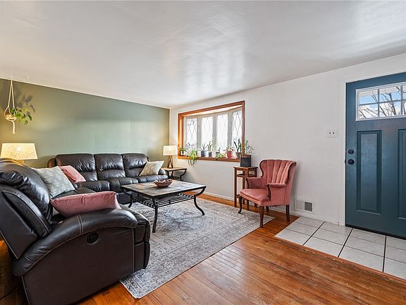 Gem of a home filled w irresistible pleasures! Exposed original oak hardwood floors, freshly painted neutral colors, sparkling new (2) bathrooms and well equipped kitchen w gas stove, new stainless dishwasher, loads of counter and cupboard space plus a surprise w a spacious pantry area! The two bathrooms were completely remodeled down to the studs features clean, modern fixtures, flooring & large showers, high rise toilets Downstairs features a large L-shaped family room (17x11 & 6x5 offset) complete w cozy, rustic fireplace for chilly nights Light filled laundry room so fresh & bright DR Sliding door to covered patio & flat, private back yard features inviting firepit Oversized rare 2 car garage w additional storage area Beautiful bow window in living room Abundance of windows - incl side windows keeps this home bright all day long! Quiet dead end street location, double wide concrete driveway Moments to local shopping, bus stop, school Freshly painted Move in Ready! Hurry!