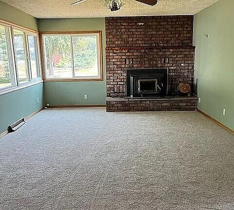 Large corner lot with lots of parking! Quiet neighborhood with deer in the area and lots of thornless blackberry bushes. All appliances come with: fridge (1 yr old), electric stove (1 yr old), & washer/dryer. Three bedrooms of good size. Whole house has brand new neutral carpet, wood burning Blaze King fireplace insert and oil heat as backup. Stove heats entire home. Wood floor in dining room, newer Pella brand double paned vinyl storm windows throughout & newer metal roof. Schedule your tour today!