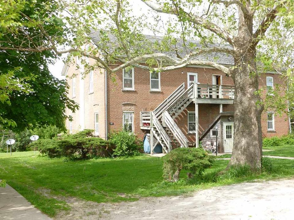 S Amana, 1 of 7 German Colonies that make up the Amana Colonies, a NationalHistoricLandmark since 1965. A 2 story, all brick(1 ft thick) was built in pre-Civil War era (1860) & used as a Colony School House. Years later the Krauss Family bought & converted it into the School House Apts. 3 generations later there are a total of 8 units. 2 efficiency units @ $200 each=$400 mo./ 2 -1BR units @ $250 each=$500 mo./ 4 -2BR units @ $350 each=$1400 mo. Total =$2300 mo. or $27600 yr in gross Income. Expenses=$11121
