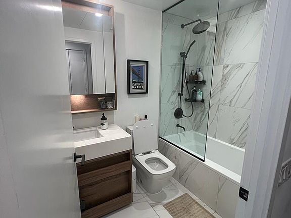 Stunning 1 Bed, 1 Bath Extensively Upgraded Unit In Newly Completed Waterworks Condos, One Of The Best Layouts In The Bldg. Floor To Ceiling Windows, Gorgeous Kitchen With Large Island & Upgraded Appliances (Gas Range), Upgraded Oak Hardwood Floors, Gas Bbq Hook-Up, Tons Of Storage, 1 Locker Gorgeous Primary Bedroom W Large Upgraded Closets. 1 Owned Locker. 1 Year Membership to brand new YMCA. Hydro (Gas, Electric & Water) not included Bldg Amenities Include: - 24/7 Concierge - Rooftop Terrace & Landscaped Courtyard + Soon To Be Completed European-Style Food Hall (Featured By Blog To) - Fully-Equipped Neighbourhood YMCA With A 25M Swimming Pool. The renter is responsible for Hydro (Gas, Electric & Water). No smoking. Small pets are allowed.
