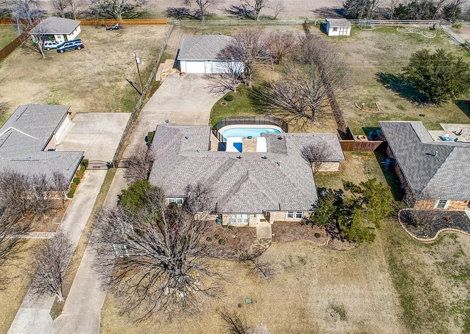 Unique opportunity to own .71 acres in the heart of Murphy with a 6 car garage! This is county living at it's best. 4 car detached garage is flexible & can be used as a workshop-RV parking with 30amp RV outlet inside &out. Great size lot has plenty of grassy play area & pool for entertaining on hot summer days. Oversized kitchen-nook have views of back yd. Kitchen features BIN SS applcs, double ovens, gas cooktop, real wood cab, corner sink & lots of counter space. 2 good size living rms give you flexibility 1 has gorgeous wood beams. Master retreat is highlighted by stacked ceiling, double sinks, sep shower, garden tub & WIC. Updates include full interior paint, all windows, sprinkler, roof, gutters & HVAC!