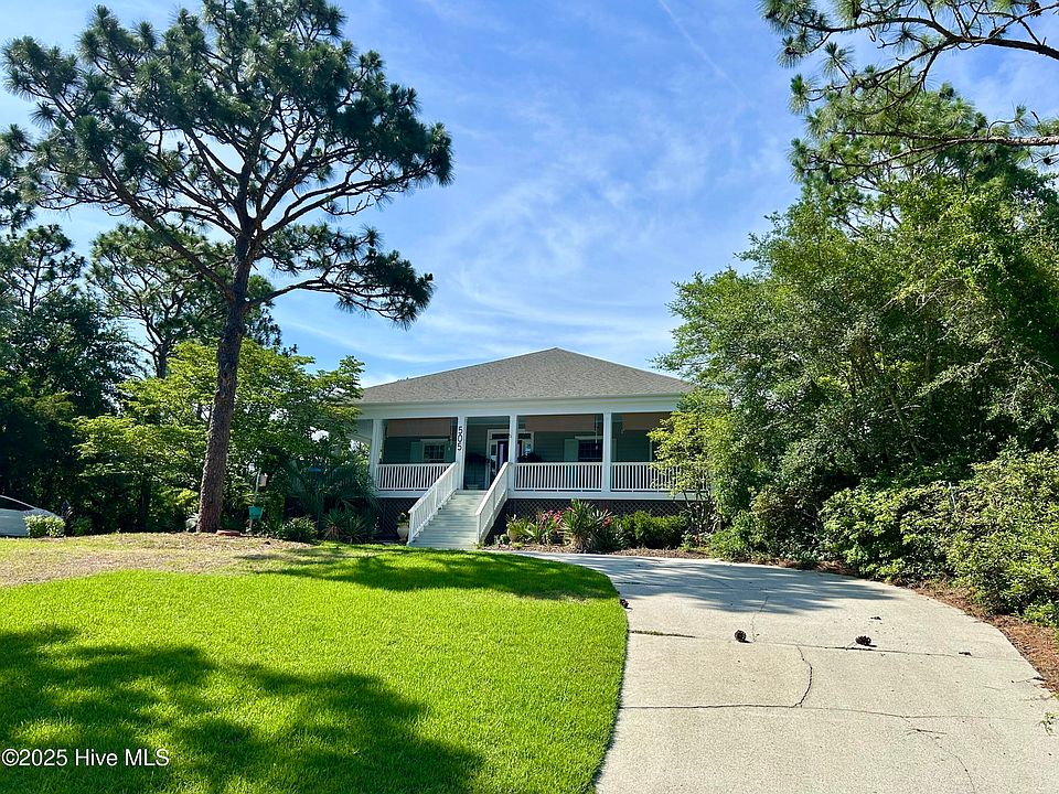 Rare Find! Beautifully maintained 3-Bedroom, 2 Bath Custom built home nicely set on a high lot overlooking the first green of the Beau Rivage Golf Course. Don't miss this rare opportunity to own a spacious 2,403 SF home perfectly situated to enjoy coastal breezes and scenic views, with a wraparound porch to relax, entertain and admire the azaleas and camelias that put on a wonderful show of color. Inside, you'll find a flowing layout with gleaming solid hardwood floors, upgraded kitchen and bathrooms with fresh paint, Andersen windows and doors that flood the space with natural light, skylights and a bright sunroom offering tranquil views of the Beau Rivage golf course. The home also features a side- entry garage below the home with plenty of storage space, and also a huge open attic space, accessed by pull- down stairs, Architectural plans already on file to build out that space as a finished attic, with a full bathroom and nice windows overlookig the front yard. The home offers both privacy and elegance in a stunning coastal setting with an easy drive to the beach and also everything that Wilmington has to offer. Low HOA dues maintain the neighborhood roads and security gates, while golf, swimming, pickleball and more at the Beau Rivage Resort can be enjoyed separately if you choose. No city property taxes, and the home is not in the flood zone. Did we mention the side- entry garage with plenty of storage space and circular driveway? This is a beautifully built home ready for you to call your own. Call for details and to set up your showing. Furnishings are also negotiable, separately from the real estate. Appliances convey.