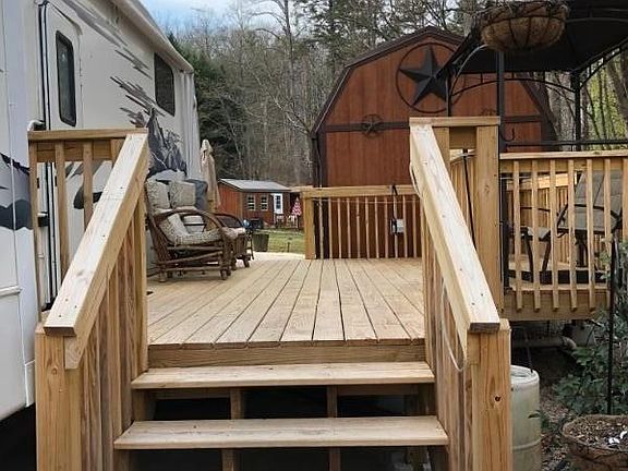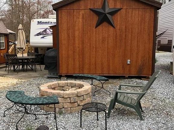 CHATTAHOOCHEE RIVER ACCESS nestled in a beautiful private RV resort. This hidden gem includes a 2006 Montana 5th wheel in great condition, seprate living room w/ fireplace, fully frunished. Two extra storage buildings. One FINISHED SUITE that provides laundry room, additional storage and sleeping space for visitors. WORKSHOP with power, storage shed for garden tools. Huge deck for entertaining and cook outs. Concrete pad and graveled Level lot that adjoins large green space area. Fees are only $210 a year including water, sewer and trash pickup. Perfect weekend get away or full time living.