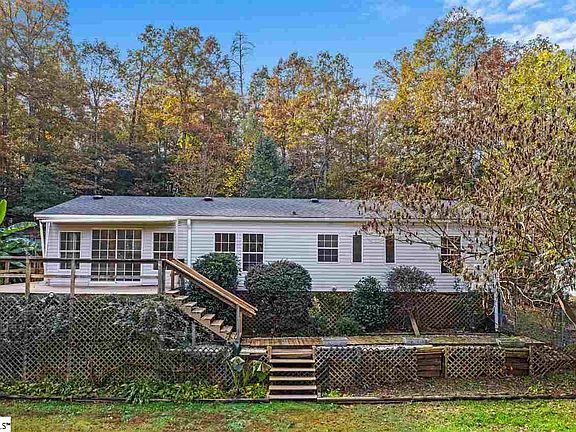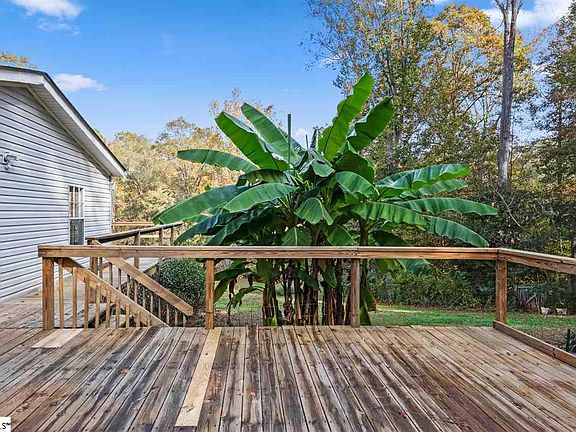 Peaceful and private home on almost 4 acres in Greer! Enjoy this incredible property and 3 bedroom / 2 bathroom home with a large deck overlooking rolling hills and trees. You will love the tranquil river at the back of the property with a trail leading to the bank. Kitchen and great room have a nice open floor plan, with a separate living room at the front of the home. Partially fenced yard with an irrigation system pumped from the river, 2 storage sheds on the property, and garden beds with lots of plants ready for you to enjoy! Conveniently located in Greer, with easy access to shopping, schools and so much more. Don't miss your opportunity to own this beautiful property!