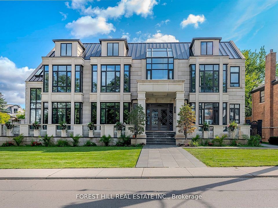 Welcome to 505 Russell Hill Road, an extraordinary custom-built residence in the heart of Forest Hill one of Canada's most prestigious neighbourhoods. Completed in 2023, this timeless limestone two-storey home sits on a prominent corner lot and offers over 9,100 sq. ft. of luxurious living space, complete with a built-in tandem 3-car garage and heated driveway. The bright, family-friendly layout features soaring floor-to-ceiling windows that flood the home with natural light. The open concept kitchen and family room feature heated floors throughout. Chefs kitchen with high end appliances and a secondary fry kitchen with sink and stove rough-in, Ideal for entertaining. The second level showcases a dramatic skylight and four spacious bedrooms, each with its own ensuite, including a primary suite with spa-inspired bath and generous walk-in closet. Elevator that services all floors. The finished lower level is designed for recreation and entertaining, featuring a 45 x 19 bar, nanny suite, rough-in theatre room, indoor swimming pool, hot tub, and rough-in for an additional bathroom.This is a rare opportunity to own a distinguished Forest Hill address, minutes away from the Kay Gardner Beltline Park and Trail - a unique part of Torontos parks and Ravines, and close proximity to Canadas most renowned private schools, including Upper Canada College (UCC) and Bishop Strachan School (BSS). *Please note. Power of sale. Sold as it is.