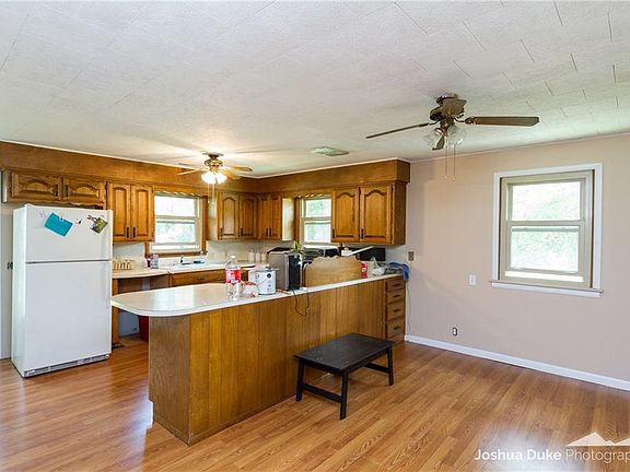 Beautiful setting on 6 acres w/huge picturesque Walnut, Oak & Hickory trees. Older home AS-IS w/newer siding, windows & roof. Perfect mini farm w/pasture land & lots of buildings. One car garage & attached 30x24 hobby space w/electric & gas heat. 4 stall pole barn for equipment & separate 32x34 workshop w/concrete floor & electric. Also has RV parking & 32x30 pole shed.