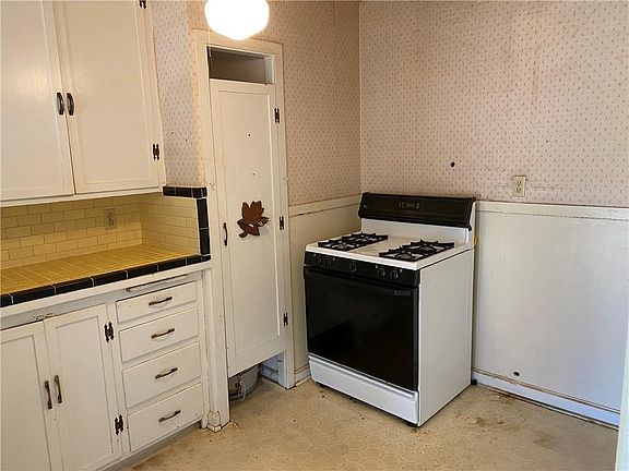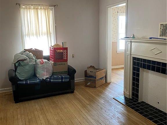 Cute home needs some TLC but has vintage kitchen and remodeled bathroom.Hardwood floors. Large detached 2 car garage with room for lots of storage Property is being sold in "AS IS"