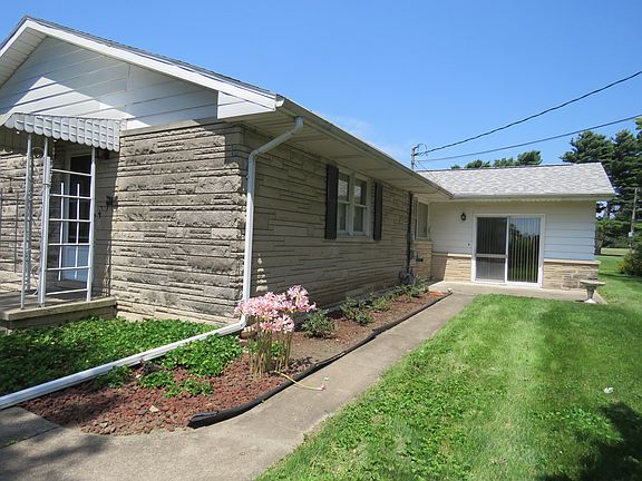 A LITTLE BIT OF COUNTRY surrounds this limestone exterior, ranch home with basement! 3 bedrooms, 1.5 baths, separate laundry room with lots of storage, 2 extra bonus rooms to use as office, exercise room, den,or family room. Eat-in kitchen offers plenty of cabinets and counter space along with included appliances. Storage is plentiful in this home and even offers 1 closet that is cedar lined. Back patio plus a covered front porch to enjoy summer's evenings and a country view. Neighborhood swimming pool! Extra 1/2 lot comes with this property!!! The attached 2 car garage and asphalt drive add to the value!