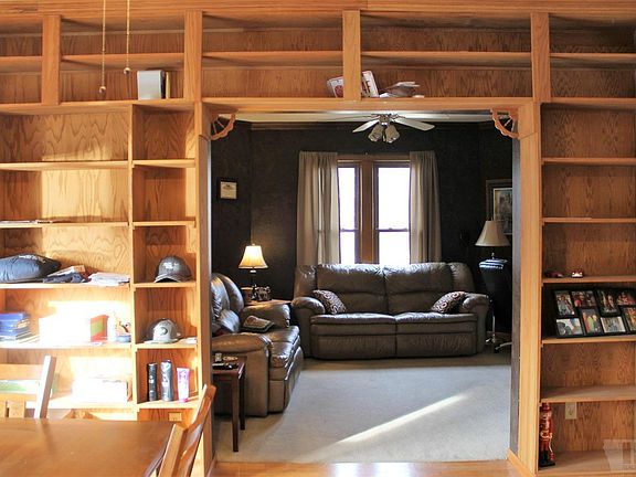 This large 1 1/2 story home is located on a beautiful tree-lined street. With a corner lot on .24 acres, there is ample room for kids to run, gardening & yard games. The front door leads to the foyer with an open staircase & high ceilings. The ML bath is located conveniently off of the foyer & the LR is to the right. The LR has high ceilings w/ crown molding. To the east of the LR is the DR featuring high ceilings, crown molding, wood flooring, a patio door & 1 entire wall is a custom built floor to ceiling bookshelf. North of the DR is the fully functional kitchen w/ 2 ceiling fans, a peninsula & an eating bar! This kitchen features a generous amount of cupboards in addition to a large pantry! Behind the eating bar to the east is a full wall of windows & an area of window seating. The laundry, located in the back entry, has overhead cabinets & a closet. The UL of this home has 3 BRS, each w/ a ceiling fan, & a nook off of the stairs. The basement has a partially finished bonus room.