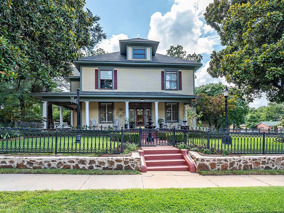 Welcome to this exquisite 1920 Classical Revival Victorian style home, nestled in the historic Azalea district of Tyler. This beautifully maintained property combines timeless charm with modern conveniences. space, ideal for entertaining and comfortable living. A picturesque gazebo and a pergola add to the outdoor charm. Upper level deck, main level back patio,and a side patio made of flagstone. A koi pond with a walking bridge enhances the serene ambiance. A fountain at the front entrance, surrounded by a black iron fence. r stained glass windows allow natural light to flood the home. Elegant chandeliers, plantation blinds, crown molding, window treatments and wainscoting add sophisticated touches. Two large living areas and a formal dining room offer ample space for gatherings. Spacious kitchen with custom cabinetry, a commercial-style oven with a side oven, and an island. Attic with the capacity to be converted into a 3rd-floor living space.