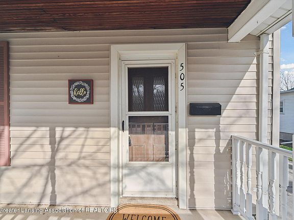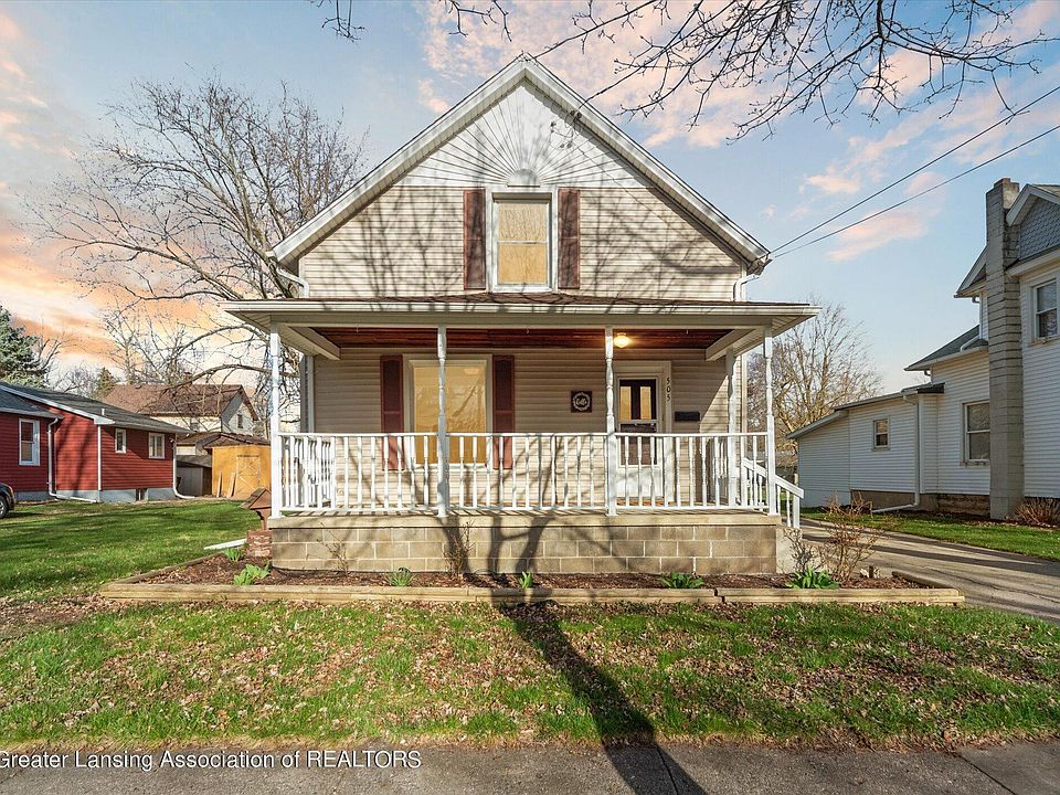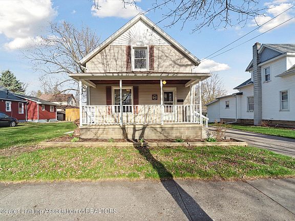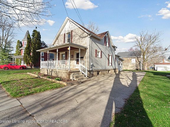 Move in ready with fresh paint, carpet, and updates! This adorable home features a cover front porch and a large 3 season sunroom. Original woodwork in the spacious living rm. with an open staircase. Formal Dining room. First floor office/bedroom has a hookup for laundry behind the bookcase. The 2nd level has 3 bedrooms, walk in closet all with new carpet and paint. This historical charmer has super thick walls for better heating and cooling. The original construction is cement block now covered with siding. The garage is much bigger than a 1 car. So much upstairs storage for endless possibilities. Note the construction on the garage is stick built with cement block fascia. New roof and water heater in 2014.