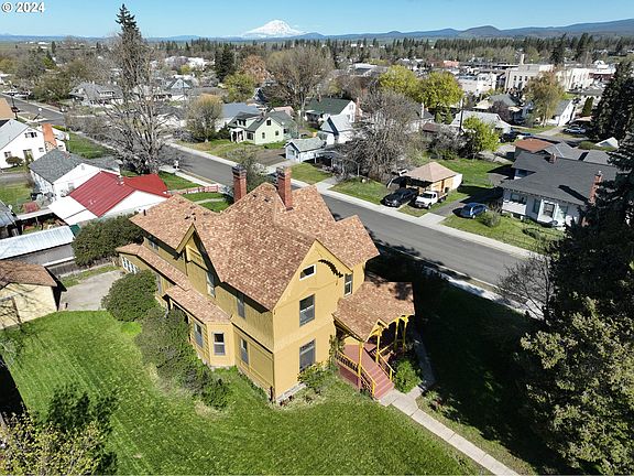 Golden says it all! There is only one "Golden House" in Goldendale, WA! Prominently located at the corner of South Columbus Ave and Collins St in the heart of town, it is truly a masterpiece! A one-of-a-kind home built by John Golden for his daughter and her new husband in the late 1800s! Thoughtful planning, high-quality materials, and skilled craftsmen resulted in a home that has stood the test of time. Pocket doors separate rooms, enabling you to make rooms larger if needed. Double fireplaces in the rooms off the main entry add a touch of elegance. A trio of windows arranged in a curve grace the north, east, and south sides of the house, ensuring there is plenty of light when the shades are up. A large sunroom was added and is perfect for getting new plants started or it would make a great craft/hobby room/workshop. New paint, a newer roof, updated electrical and heating/AC systems, and a remodeled kitchen make this move-in ready. It would make a good first/second home or income-producing property. Price recently reduced by motivated seller. Call now!