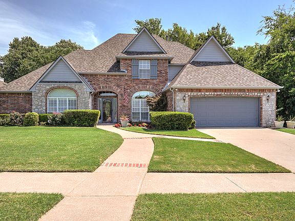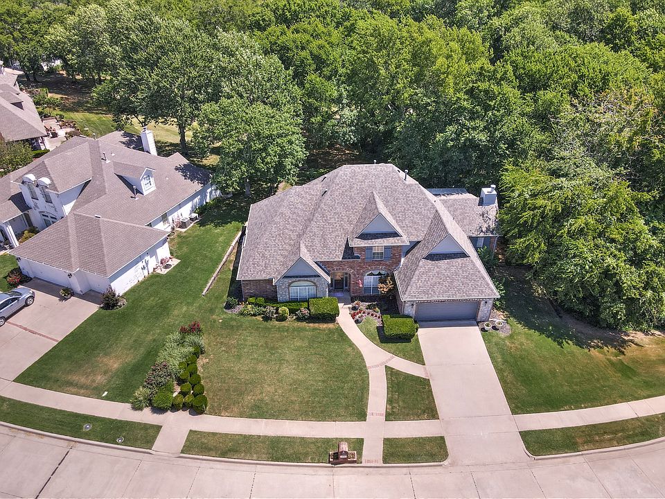 Fabulous one-owner Country French home on the 5th green at Forest Ridge! Formal living & dining rooms. Plantation shutters throughout. Beautiful screened in porch overlooking the professionally landscaped yard & the 5th green. Mature trees, decorative lighting. House was designed to have two bedrooms on the first floor. Current owners are using the fourth bedroom as an office. Has a closet, egress windows, and access to a full bath. Seller has updated with hardwood flooring, granite & master bath. Storm shelter in garage. Vaulted ceiling in a family room that flows beautifully to kitchen and formals. Upstairs boasts two bedrooms and a full bath.Floored attic will even accommodate an area to practice your golf swing!