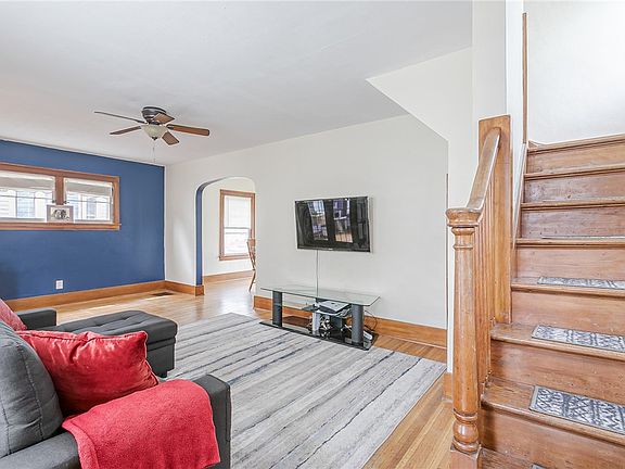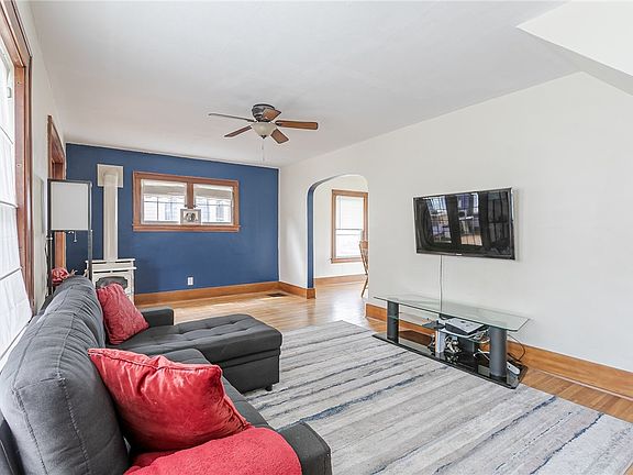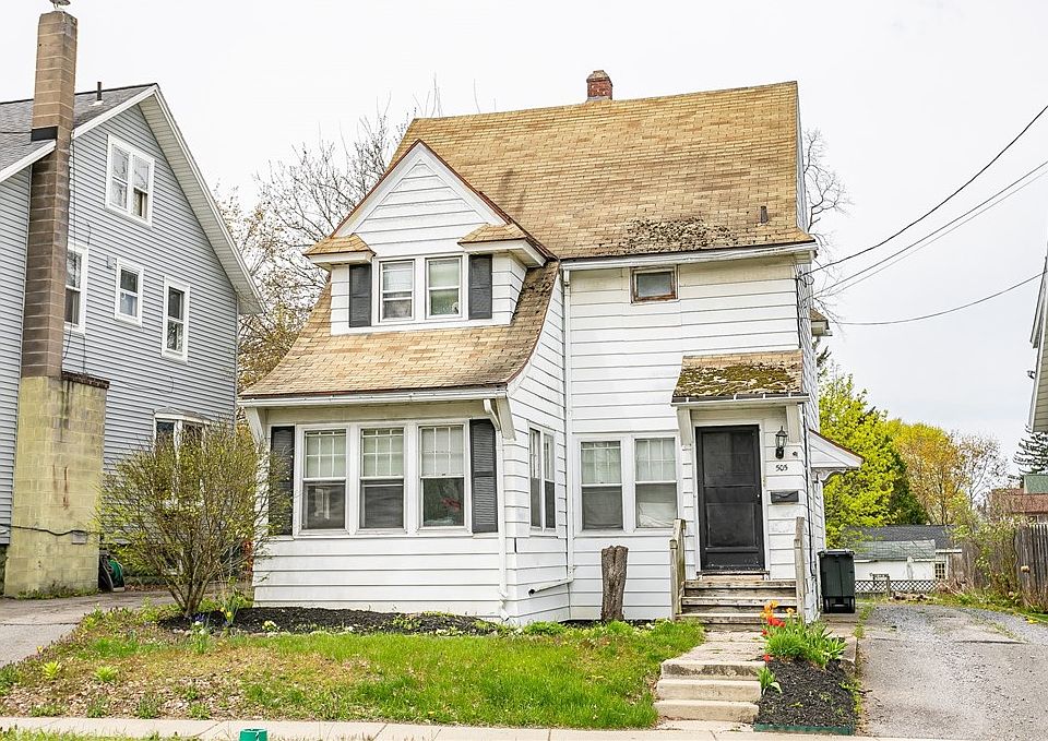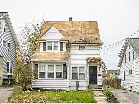 Don't fear the roof! It has years of life left but is discolored and mossy due to a tree that was removed. Charming East Rochester home within walking distance to schools, shopping and parks. Hardwood floors throughout with original wood doors, windowsills and doorframes. French doors separate the sunny front room from the main living room. Kitchen is completely updated- new Pergo flooring, appliances, quartz countertops, can lights, sound system and cabinets. Both bathrooms are completely remodeled- new tub and surround installed last week! Updated electric, newer hot water tank (2017) and furnace. Basement is high and dry. Walkup attic could be finished into a bonus room or additional bedrooms. Gas stove in living room hasn't been used and would need to be serviced. Gutters, windows and deck will be sold AS IS. Seller prefers quick close. Showings begin 5/3 with offers being looked at on May 8th at 3:00 pm.