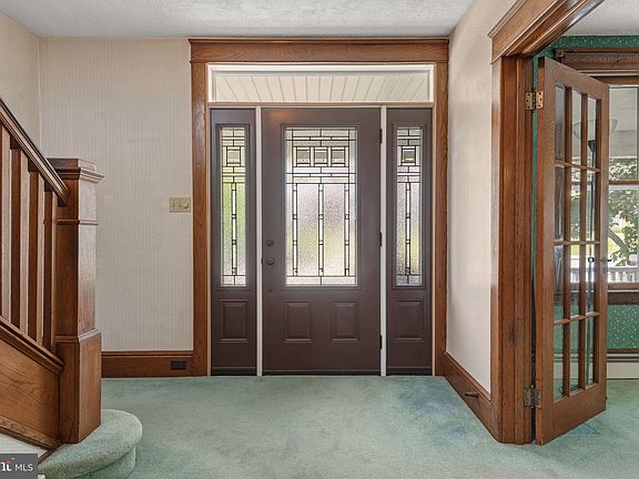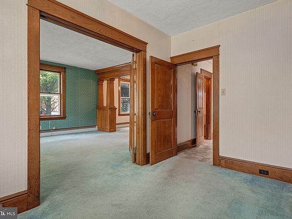 Welcome to this stately 3-story brick colonial situated on a corner lot in the heart of Red Lion Borough. With 4 spacious bedrooms (potential 5th bedroom in the finished attic), and 2.5 baths, this home blends classic character with key updates. You'll love the original wood moulding, interior colonnade, large wooden doors -with original brass hardware, and hardwood floors hidden beneath the current carpeting Enjoy outdoor living on the large front porch or entertain on the oversized deck. Off-street parking is a breeze with a 2-car parking pad and a detached oversized 2-car garage featuring a brand-new roof, partially finished loft, and electric and water already run—perfect for a future studio or workspace. Inside, updates include new vinyl flooring in the sunroom, kitchen, and bathrooms, plus modern fixtures, faucets, toilets, and a pedestal sink. The galley kitchen is book-ended with brick accent walls, one of which features a wood burning fireplace. Relax by the bay window, where the built-in bench creates a peaceful spot to enjoy the warmth and character of the brick fireplace. Bedrooms upstairs have built in shelving, cabinets, and the primary bedroom has two walk-in closet spaces. The 3rd floor attic provides additional living space or ample storage. Finally, the large basement adds extra flexibility with a full bath and laundry area, with walk out steps to the back yard. With the right vision and a little elbow grease, this home is ready to shine -mix your modern touches with its timeless charm. 1-year home warranty included!