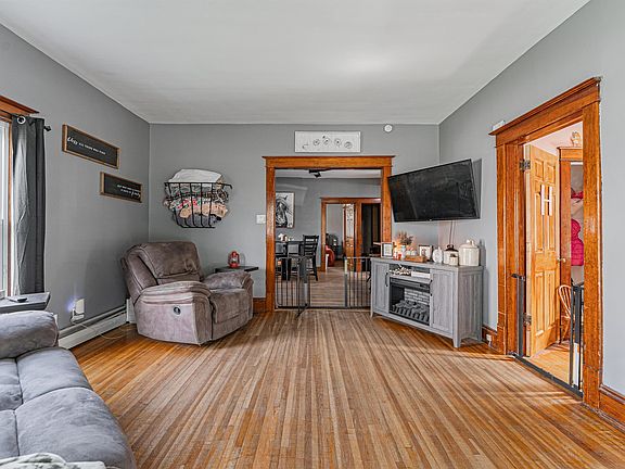 Large fenced backyardComfortably sized bedroomsUpdated full hall bathExpansive breakfast bar areaEfficient hot water heatVinyl replacement windowsRustic hardwood flooring