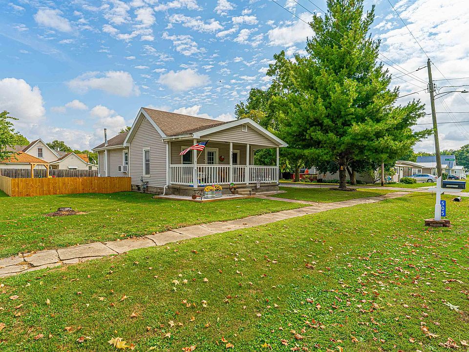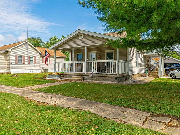Absolutely adorable two-bedroom vinyl sided bungalow style home tucked conveniently in Atlanta with easy interstate access between Lincoln and Bloomington! The move-in ready interior boasts an open concept living/dining area with rustic hardwood flooring, stunning updated and equipped (appliances new in 2024 -- dishwasher new in 2025) kitchen with solid surface countertops, tiled backsplash, and expansive breakfast bar area, two comfortably sized bedrooms -- both with hardwood flooring, and an updated full hall bath. Property also features a partial basement with laundry facilities as well as mechanicals, wonderful covered front and side porch areas, vinyl replacement windows, striking natural woodwork, large fenced backyard, detached garage with side alley access, efficient hot water heat, fresh paint and modernized fixtures throughout, and a recently installed hot water heater (2025). Super charming and waiting for new ownership is this choice small town Logan County residential dwelling!