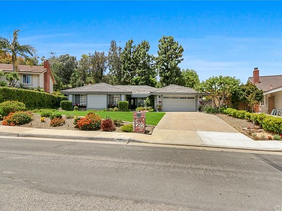 Ideally situated in Anaheim Hills' sought-after Westridge community, 505 South Tumbleweed has been completely upgraded and presents an atmosphere of charm and comfort that is sure to impress even the most discerning buyers. This single-story dream home comes complete with 4 bedrooms and 2.5 bathrooms that are perfectly laid out over its 2,192 square feet of living space. When arriving through the formal entryway, you will admire the lovely neutral colors, crown moulding and the newly installed elegant plank vinyl flooring throughout. The remodeled kitchen is open to the family room and boasts extensive white cabinetry, granite countertops, a stylish backsplash, stainless steel appliances, gas range and a large pantry. Featuring privacy and luxury, the grand master suite provides the perfect space to relax after a long day with its generous walk-in closet, dual vanities and walk-in shower. The home's backyard offers a tranquil sanctuary filled with tall pine trees, a large paved patio, a custom fireplace, a grass area, and a vegetable garden. Located on an a quiet interior cul-de-sac street, just a stone's throw from the community pool and tennis courts, this coveted residence is a must-see.