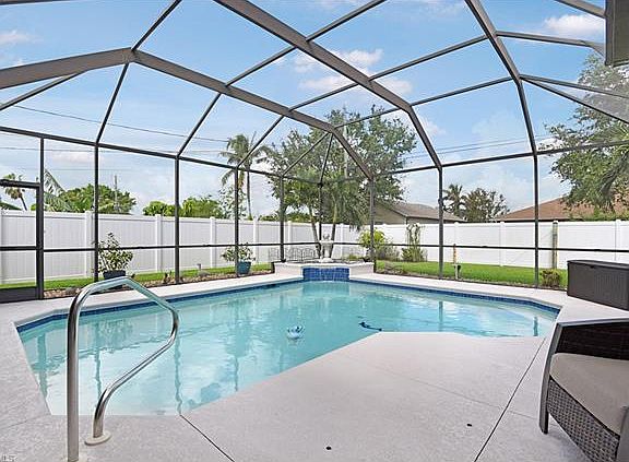 Amazing pool home in non-gated community! Located in a family-friendly neighborhood, this 3 bedroom & 3 full bath home offers almost 2,200sf of living space. With a meticulously maintained lawn, completely fenced in backyard and and extended pool lanai... this home has enough room for every member of the family! The Open Concept Kitchen offers a large island w/ sink & Breakfast Bar, built-in desk and pantry in laundry room. The refrigerator and washer & dryer are only one year old. Perfectly designed home, with all the main living area and the Master Suite having a view of the pool lanai. The Split Bedroom floor plan allows for plenty of privacy. In addition, both Guest Rooms have private entry to Guest Baths. In 2010 the a/c unit and duct work was replaced and it features a UV light for mold. Last year the entire home was repainted and the epoxy on lanai was redone. This home is not located in a flood zone, and it offers storm protection via accordion shutters. Conveniently located close to the Mid-Point Bridge, giving easy access to Fort Myers.