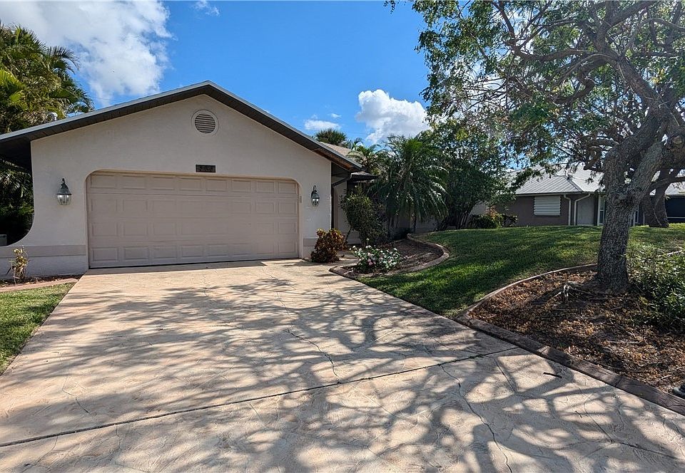 Come and see this wonderful one owner home consisting of 3 bedrooms and 2 baths with an additional detached single car garage on a double corner lot in SW Cape Coral! This home offers an open floor plan with an updated kitchen and large updated bathrooms. One of the bedrooms has been converted into an office with desk and storage for those that work remotely. The desk can be easily removed to use as a bedroom again. Outside you'll find a gorgeous park like setting with lots of privacy. The extra large screened in patio which runs the entire length of the home offers plenty of space for entertaining family and friends. It has accordion shutters for extra protection. No worries with power outages as this home offers a whole home generator! The roof was replaced in 2020 and the A/C was replaced in 2018. The detached single car garage is perfect for extra storage, workshop, craft area or parking for your toys! The cabinets can be removed if you need space for parking an additional vehicle. This home is a must see. Call today to schedule your showing!