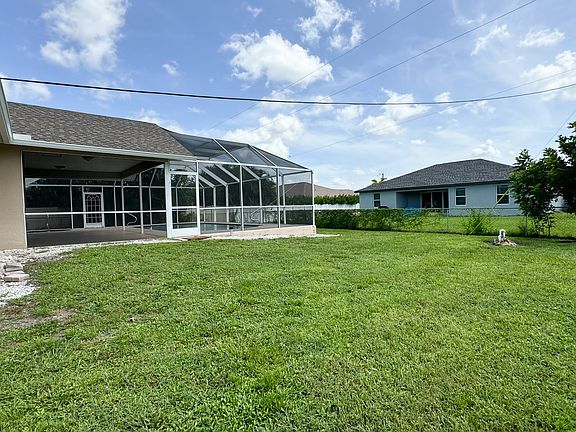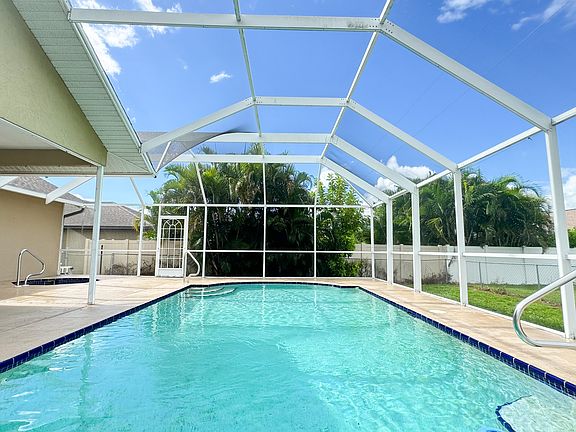 Pet friendly with fenced yard! Perfect for entertaining: LARGE Covered Lanai and Pool Cage and outdoor living area! Vaulted Great Room opens to pool and Lanai. Master suite with LARGE walk-in closet & Double Vanity. Open Split Bedroom plan. Tile baths. Bright and sunny Kitchen with large panty & breakfast bar. Dinette / eat-in kitchen. Nice sized bedrooms & closets (bench seat in front bedroom). Spacious 2 car garage. Covered front screen porch entrance. Great central Cape location just south of Pine Island Road and west of Skyline. PET friendly. Cats ok. Dogs ok - but no aggressive breeds. Owner pays Landscaping, Pool Service, Pest Control.