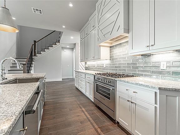 Stunning new construction home in a highly sought after neighborhood! This immaculate two story home features custom wood detailing throughout the home, open floor plan great for entertaining, and custom fireplace in the living area. The kitchen is a chef’s dream with its commercial grade appliances, large island with an abundance of counter space, and spacious walk-in pantry. The exquisite master suite features an ensuite bathroom complete with double vanity, large soaking tub, tiled rain shower, and spacious walk-in closet with custom shelving. Enjoy warm summer evenings from your covered back patio complete with brick fireplace, mantle with space to mount a television, and ceiling fan to stay cool. Utilize the 3 car garage for extra storage and workspace. Located just minutes from Downtown Bentonville, local schools, and miles of walking and biking trails, this home has access to everything you need. Welcome home!