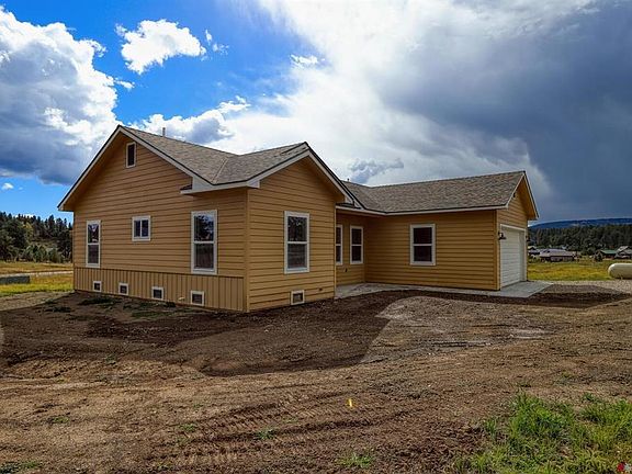 PRICE ADJUSTMENT!!! BRAND NEW HOME CAME IN BELOW BUDGET!!! GREAT NEW PRICE!!! 449,900. This BRAND NEW HOME is located in sunny Pagosa Springs, Colorado in beautiful Southwest Colorado. BRAND NEW HOME LOCATED IN LAKE HATCHER AREA ONLY MINUTES TO NATIONAL FOREST ACCESS FOR BOTH WALKING, BIKING AND MOTORIZED TRAILS. This 3 bedroom 1 full and 1 3/4 bath 2 car garage home is sitting on 1/4 acre with public utilities such as internet/sewer/water/electric and phone, this home has all the right stuff!! 9' ceilings, low maintenance granite counter tops, upgraded white cabinets, custom paint inside and out, whirlpool stainless appliances, custom tile walk in shower, custom tiled bath surround in guest bath, luxury vinyl floors, beautiful lighting and plumbing fixtures throughout, front concrete covered porch, redwood back deck with hand rail, low maintenance exterior, are just a few of the fantastic things about this brand new home. LOCATED ONLY 50 MILES FROM WOLF CREEK SKI AREA. HOME COMES WITH A 1 YEAR BUILDERS WARRANTY, easy access located right off of a paved road. PLENTY OF SOUTHWEST EXPOSURE FOR THE GARDNER. Located across the street from the walking path and a short distance to the Pagosa Highlands Park, STOCKED FISHING LAKE and National Forest access.