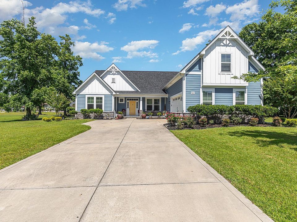 Discover luxury living at its finest in this exquisite 4 bedroom 3.5 bathroom ranch-style home located at 505 Saltwood Ct in Longs, SC. Boasting over 3000 sq ft of living space, this like-new residence offers a spacious open floor plan perfect for modern living. This home features upscale details such as coffered ceilings, tray ceilings, a luxury trim package, and tile throughout, elevating its elegance. Ascend the hardwood stairs and entertain guests effortlessly with the second-floor bonus room with wet bar, or unwind on the covered front and rear porches, offering serene outdoor retreats. Also, the extended 2 1/2 stall garage has a utility sink and washer/dryer hookups as well. Nestled within a gated neighborhood, residents of the prestigious Pelican Bay community have access to a range of amenities including boat storage, a boat ramp, and a day dock on the Intracoastal Waterway, ideal for those who love to explore the water. Conveniently located just minutes away from shopping and the beautiful beaches of Longs, SC, this property epitomizes coastal living at its finest. Schedule a private tour today!