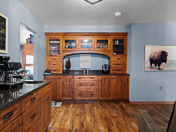 Exquisite, recently updated home boasting over 6300 sq foot. This impeccable, five bedroom, 3.75 bath home sits at the end of a cul de sac on over an acre. No HOA. Multiple living spaces, large kitchen and a 2400 sq foot shop are just a few of the bonuses this home has to offer. ImprovementsThis home has ample space, indoors and out! A welcoming covered front porch runs along the front of the house where you can sit and watch the many deer that come to feed under the mature trees. Enter into the home where the main level offers one bedroom, 3/4 bath, two large living areas, dining area, and large kitchen with ample bar seating, mud room, enclosed back porch and bonus room and attached two car garage. The master suite can be found on the upper level, along with another bedroom, laundry, 3/4 bath and huge game room and bar area. The fully finished basement offers two, non conforming bedrooms, another living area, laundry, full bath, office and reinforced gun safe room. The 1.1 acre lot is nestled at the end of the cul de sac and has a fully fenced yard with lots of room for activities. 2400 sq foot heated shop offers three oversized bays and plenty of room for equipment, tools and machinery. Property is zoned Rural Residential. RecreationFishing is available in town at Panther Pond located off Hwy 387 approximately a mile from this home. A wide variety of species are stocked in the pond: Black Bullhead, Channel Catfish, Green Sunfish, Largemouth Bass, Rainbow Trout, and Snake River Cutthroat. Check out the Wyoming Fishing Guidefor information. See Section 3 for info specific to Wright. Wright, WY is a prime location for pronghorn antelope, mule and white tail deer. There is a small group of mule deer that frequents this home and take shelter under the mature trees. LocationHay Creek Golf Club can be seen from the property. An oasis on the vast Thunder Basin Grasslands in northeastern Wyoming, Hay Creek Golf Club is a public course offering a nine-hole links-style layout challenging even the most experienced player. A full-service restaurant and lounge, and a progressive pro shop with club and power cart rentals. Wright Recreation Center offers a multitude of opportunities for recreation, activity and fitness. The facility's 25,939 sq. ft. of space joins the existing gymnasium. The facility now has a three-lane swimming pool, lazy river pool, a hot tub, locker rooms for patrons of the facility and for school activities in the gymnasium, a party/meeting room, a weight room, cardio room, dance/fitness room and a spinning studio. Walking Paths - Wright offers nearly 14 miles of walking paths. The pathways prove to offer runners and bikers a challenging workout while also providing a nice area for families to get out for a relaxing walk around the community.