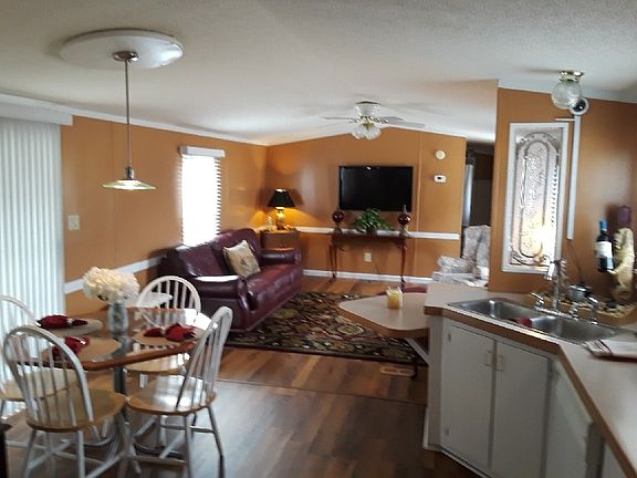 Manufactured home in Forest Hills Community includes new life time guarantee water and scratch proof flooring, plantation blinds , outside shower and large storage shed. Fully furnished and move-in ready. Lease lot. The price includes the transfer fee.