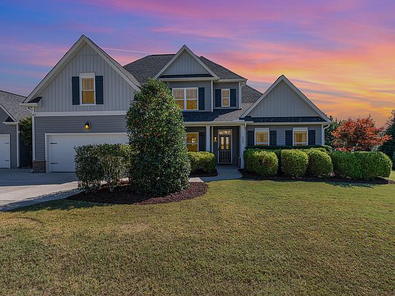 Nicely tucked away in Blalocks Glen neighborhood just minutes from 540! The .63-acre lot has an incredible outdoor living area, including a rear porch with retractable screens, a huge masonry fire pit with plenty of outdoor seating surrounded by fragrant evergreen trees, large fenced backyard plus an enclosed garden area with raised beds. Main level Owner's Suite with large walk-in closet, separate walk-in shower, and soaking tub plus additional Owners/Guest suite on the 2nd floor!! Step inside through the spacious foyer and enjoy the open floor plan with engineered hardwood floors throughout the main level. Spacious Family Room featuring a gas log fireplace, separate dining room, gourmet kitchen with center island, granite countertops, SS appliances featuring induction range with virtual flame lighting, microwave with air fryer & fast bake, walk-in pantry, and breakfast area. The second floor offers a Guest Suite, spacious Loft, Office, Bonus Room plus storage in the walk-in attic.
