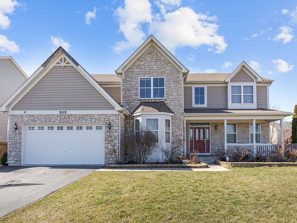 Located in the highly sought after community of Churchill Club, make this home yours and enjoy all the extras this community has to offer! From the moment you approach, this home catches your eye with its spectacular curb appeal. Lovely front porch and exterior stone accents! Space is not an issue in this approximately 3300 sq ft home, offering 4 bedrooms, 2 full and 2 half baths and a full finished basement, giving you an additional 1564 sq ft of living space! You'll be drawn into this inviting open flowing floor plan. The first floor boasts a large office with tons of natural light! Enjoy warm nights by the fireplace in the charming family room. The kitchen awaits with a large island, breakfast bar, double oven, granite countertops, crown molding and pantry! Spacious Primary suite highlights include his and hers closets, sitting room with an ensuite. Entertain easily or hang out with the family in the finished basement equipped with a media room, built-in bar, exercise room, bathroom and lots of additional storage space. Sought after elementary school is not only in the neighborhood, it's across the street! Churchill Club offers a private clubhouse with an abundance of amenities such as a pool, splash pad, fitness room, business center, tennis courts, basketball courts, volleyball and a soccer field! Easy access to shopping, dining, entertainment and much more. Make this amazing community your home now!
