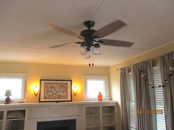 Could be three bedrooms by using the rear sunroom for bedroom. Spacious living room with fireplace. Seller has had fireplace tuckpointed & checked for safe usage. Replacement windows on main level put in by Seller. Hot water heater in 2018. Recent front and side doors. Several new light fixtures. Motion lights for exterior. Vinyl siding and architectural shingle roof in 2010. Original wood floors in LR, 2 Bedrooms & Sunroom. Attic is user friendly for finishing. Unfinished basement with garage. Seller can fit mid-size SUV in garage. Great location. Fenced yard.