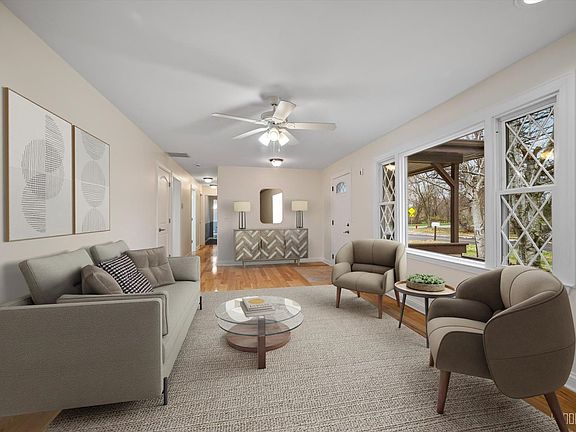 Welcome to Algonquin Shores! This completely renovated ranch home is nestled among the scenic landscape of rolling hills and towering trees in this gorgeous riverfront community. Located steps from the Fox River and just minutes to quaint downtown Algonquin, this two-bedroom two full bathroom ranch is essentially a brand-new home. Freshly painted throughout, the large welcoming living room features a wall of windows for ample natural light as well as gorgeous wide-plank hardwood flooring and upgraded tall baseboard trim both of which run through much of the home. The adjacent family room with new carpet is perfect for entertaining with its generous size, open layout to the kitchen and convenient access to the no maintenance composite deck. Your new kitchen features LVP flooring, a large island with breakfast bar as well as lots of cabinetry for all your storage needs. The high-end Frigidaire stainless steel appliances including oven with gas cooktop, refrigerator and dishwasher are brand new and in fact still retain the protective covering so you will be sure you are the first to use them. The numerous recessed ceiling lights and skylight along with lots of counter space provide the perfect working environment for the chef of your home! Additionally, family and friends will enjoy dining in the large kitchen eat-in room, open to the main kitchen and surrounded by windows making for mesmerizing views of the large backyard and surrounding natural wilderness. There is also access to the very large newly painted covered porch which spans much of the rear of the home. Complimenting the kitchen space is a large and very functional butler's pantry for even more storage and working space. Both bedrooms also feature the wide-plank hardwoods and upgraded baseboards as well as good closet space. Both full bathrooms are updated including gorgeous new vanities. The hall bath is complete with a tub/shower combo and the master with a convenient walk-in shower. At the rear of the home, you will find an enormous mud and laundry room area, again with additional storage and counter space. This room was smartly designed with direct access to both the backyard and oversized garage. The attached garage is a very generous two-car with access to the covered porch and backyard in addition to the mudroom entrance. Topping off this space is the separate but attached bump-out area which is perfect for storage or even a workshop. Water Heater: 2023; New well pump: 2017; HVAC: 2009 located in crawl; Most windows approx.: 2009; City sewer. As a part of the Fox River Valley, the surrounding area is in many ways resort-like. Steps from your door is access to over 30 miles of outdoor recreation along the Prairie Trail spanning all the way from Algonquin to Richmond and Hebron in the north and Woodstock to the west through various connecting trails. With nearby access to the Fox River for boating and fishing your new ranch home is truly located in a recreation lover's outdoor paradise. Have your agent schedule a showing TODAY or call us directly!