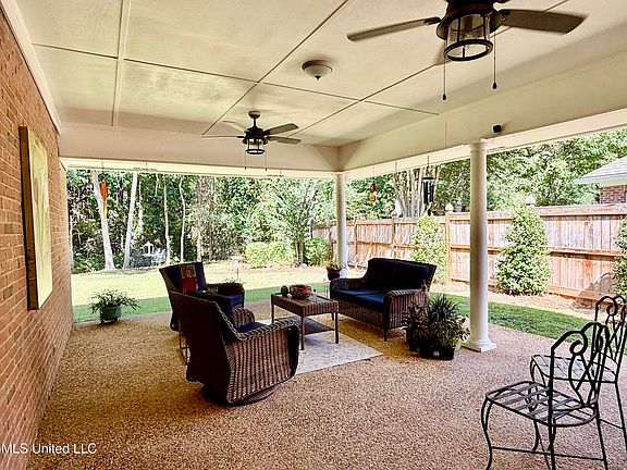 Expansive back patioSpacious living spaceSurrounded by beautiful landscapingFormal dining area