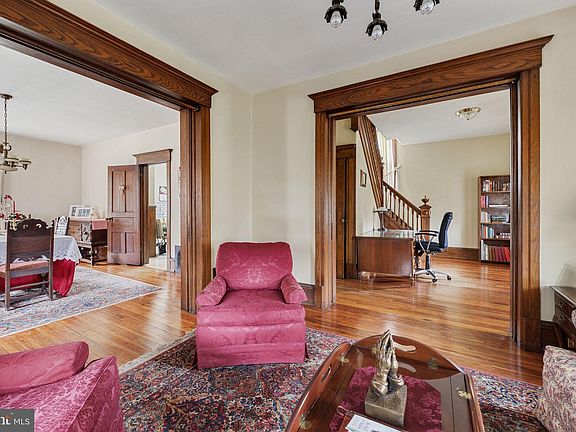 What a lovely, classic four square Colonial on a HUGE corner lot. Stately wrap around porch. Original Chestnut stained trim and woodwork throughout the home. Original hardwood floors and an awesome Chestnut staircase. 4 large bedrooms upstairs. There is a walk up finish-able large attic to add a generous sized 3rd floor! Utica 98% efficient HVAC system. Large basement with a TV room area set up, laundry room and a full bathroom. Cool wood pocket doors and 9 foot ceilings make this home a real charmer. Do not miss out on this lovingly maintained home by long time (40+ years) owners!