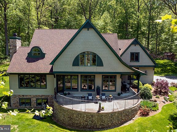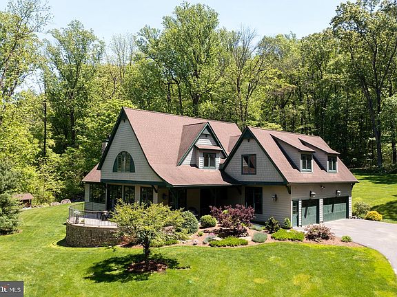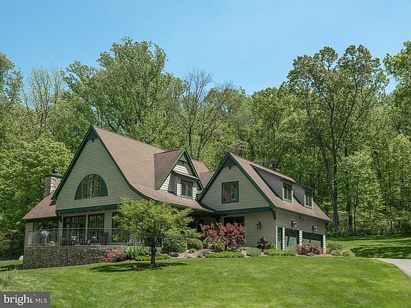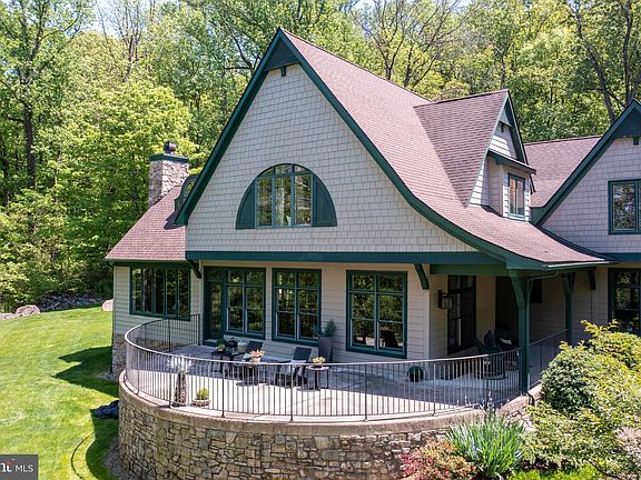 Boulder Lodge , of the Arts and Craft Architectural aesthetic, is located in the rolling topography of Northampton County where generations of working farms still dot the landscape. Built in 2006, this 5 bedroom home abandoned the common style of Center Hall Colonial and entered into the new concept of the open floor plan. The kitchen with granite counters and island has stainless steel appliances, a welcoming Breakfast area and walls of glass that look out at the semi-circular patio and the lush landscaping beyond. From the kitchen, the living room, vaulted ceilings, stone fireplace and the formal dining area, are all within a turn of the head. A first floor bedroom/office is ideal for a relative who can't access the second floor. The second floor offers the sumptuous en suite master and two additional bedrooms. Boulder Lodge boasts picture perfect landscape consisting of green carpeted lawns, specimen planting, old growth hardwood trees, boulder retaining walls and a stream. It is a rarity to find a home with distinctive design and a spectacular 3 acre lot...however Boulder Lodge delivers on all categories.