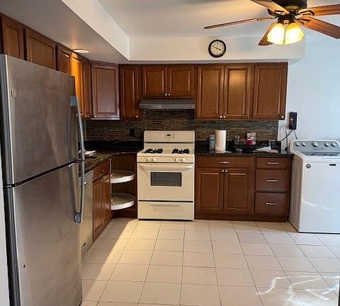 Welcome to this recently updated 2 bedroom apartment located on the first floor of a very well-maintained 2 family brick home. Nestled on a quiet tree-lined street, this light filled unit offers a prime location close to transportation to NYC, shops and restaurants. Easy comfortable access with no stairs to climb. Enjoy a large modern eat in kitchen and a stylishly renovated full bathroom. Both bedrooms are well sized and the unit offers a full sized in -unit washer and dryer for your convenience. There are hardwood floors and no stairs to or in the apt. Some use of the relaxing backyard. Plenty of street parking is available, making coming home stress free. Don't miss your chance to live in this bright, updated home in a prime location!