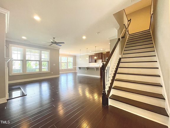 Beautiful 3 Bedroom Townhome with 3rd Floor Loft and 2-Car Garage in The Creeks @ Weston, Cary! Available Now! The first floor features lovely hardwood flooring all throughout. The spacious family room with gas log fireplace and ceiling fan overlooks a fully equipped kitchen with many cabinets for storage, granite counter tops, tile backsplash, center island with pendant lights, and stainless steel appliances, including a gas cooktop, microwave range hood, dishwasher, and double wall oven! Dining area has access to screened patio with a ceiling fan. The 2nd floor opens with 2 spacious secondary bedrooms plus a huge primary bedroom with large walk in closet, double sinks with granite countertops, and a walk-in glass shower! 3rd floor features a loft and a full bathroom, great for entertainment, home office, study, etc. Washer and dryer are included. Proximity to Arboretum and Park West Shopping Center, Metlife, SAS, RTP, downtown Raleigh, I40, and I-540! Must See!!