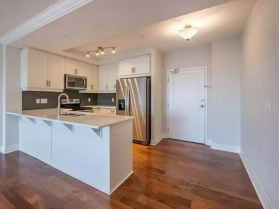 The open concept design makes for a bright, expansive space that is perfect for entertaining. When you arent soaking up the awesome view or grilling something on your large balcony, youll enjoy catching up in a large living/dining space while dinner is finishing in the chef-worthy kitchen. Speaking of the kitchen, it offers lots of workspace on quartz counters and plenty of storage in modern cabinets, all framed by an elegant tile backsplash