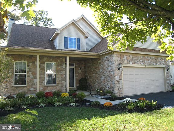 Absolutely wonderful showstopper home! Every once in a while, that very special home comes along... One look is all it takes! The owners have lovingly and meticulously upgraded/renovated this amazing home in detail. Beautiful and move-in ready! This is your chance to live in Legacy Oaks Active 55+ Community on a premium lot in a cul-de-sac with a full basement.  Enjoy the front entryway with a lovely covered porch to the front door.  This great 1,866 sf Traditional style home is always a favorite, offering 2 bedrooms, 2  baths, center hall entry home boasts gleaming hardwood floors, 9’ ceilings and recessed lighting throughout. As you enter you will delight in the front to back view all the way through to the Breakfast room. To the left is the Elegant living room and dining room.  There are gorgeous newly installed hardwood floors (on the entire first floor). Following down the center hall to the Kitchen shows 42” upper cabinets, new tile backsplash, under counter lights, granite countertops and stainless appliances (less than a year old) and large pantry. Adjoining the kitchen is a bright breakfast room, offering a Pella sliding door with blinds, overlooking a secluded treed view, and expanded paver patio, with expandable awning; a perfect spot for summer outdoor relaxation. Off the Breakfast room is bright and cheery sun room to take in more of the gorgeous back secluded property. To the left of the Kitchen is the large Family Room with tall windows that flank a floor to ceiling stone Fireplace.  Continue through the hallway to the lavish first floor bedroom suite with 2 walk-in closets, lovely bay window and hardwood floors. The adjoining en-suite full bath will delight you with upgraded/ renovated luxury vinyl floor tile, double granite vanity, and 4’ built-in attractive shower.  To the right is the second bedroom featuring a large closet. Also, there is a full bath with granite vanity, ceramic tile floor and tub shower off the hallway to service the 2nd bedroom and guests. The utility room features the washer and dryer, storage closet and entry to the full basement and garage.  The basement houses the HVAC system, sump pump, 2 small windows and is a full basement under the whole house area, good for storage boxes and holiday decorating items The basement surprise is a newly constructed room with carpet and window, for an office area.  There is a built-in cedar closet for winter clothes and several other built-in closets for extra storage.  This home features a 20KW whole house Generator, newer HVAC and Water Heater, roof, garage door and opener.  Other upgrades include  leaf-filter on gutters and surround sound speakers.  Community amenities include a club house, outdoor swimming pool, bocce court, tennis court, pickleball court, fitness room, social room, billiards, library, shuffleboard and more.  Trash pickup, lawn care and snow removal are all included in the HOA. Also there are wonderful meandering walking paths.  Extra 4 car parking area is adjacent to the home.  Restaurants, Grocery stores, and Valley Square Shops are just around the corner! Warrington township Parks and Recreation areas with walking trails, and activities is within minutes of this home. Most of all, be first to see and treasure this handsome home for your very own.