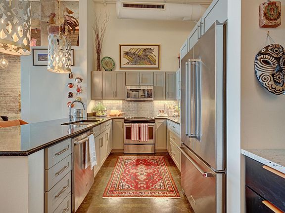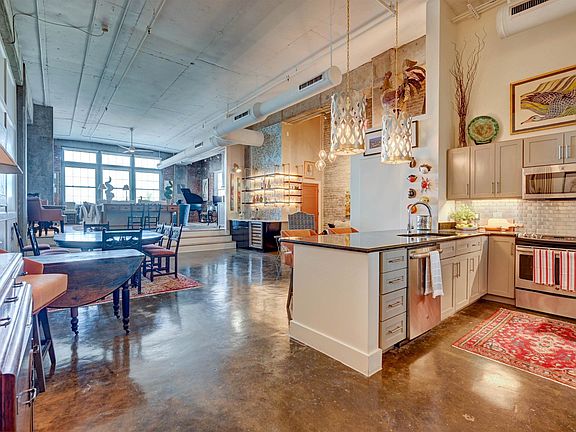 Beautifully updated 1BR/1.5BA condo available in the Lofts @ South Bluffs! This loft has 15 foot ceilings, sealed brick walls on the north & east sides, raised living area with electric fireplace, all walls freshly painted. Added large bar area with granite counters, rustic shelving with LED back-lighting, 50-bottle wine fridge. Primary BA renovated as well with new tile bath/shower surround, granite counter & new tile floor & doors. Kitchen has new pendants, added walk-in pantry. Come see!