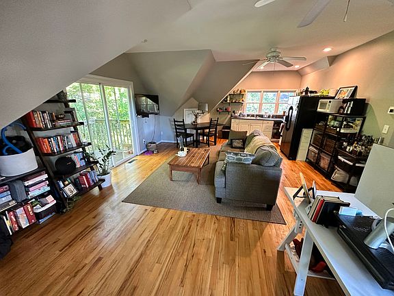 Very quiet garage apt. One bedroom/One bath. Utilities included (Water/Heat/Wi-Fi). Off-street parking for 1 vehicle. Newly refinished hardwood floors and deck. Stove/Full-Size Refrig/Microwave/Laundry Room. The apartment is 90ft behind our main house with alley access, stand-alone bldg. Currently vacant. Included furnished pix to help envision layout options - private outside area. Apt. is elevated above (on hill) all the surrounding houses (including the main house), very private. The owners are a quiet and considerate couple w/child. Garage doors are wall-mounted direct drive, very quiet, not the loud chain and bang type. Previous tenant left Washer/Dryer (free if you need). Does not include use of garage. 12 months, First Month and Deposit, Rent and fees paid via Apartments dot com