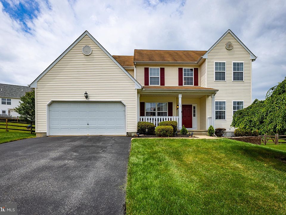 ***ALL OFFERS ARE TO BE RECEIVED BY NOON TOMORROW, MONDAY, JUNE 10TH*** QUESTIONS CONTACT LISTING AGENT. Nestled in the community of Gray Acres is this beautiful 4-bedroom 2.1 bath home. Upon entry you will notice the COREtec waterproof luxury vinyl plank flooring throughout the main level except for in the living room/home office, which has plush carpeting. The family room is comfortable and boasts a gas fireplace and crown molding. A granite topped beverage station that occupies a nook in the dining area offers refreshments from an under-counter glass door fridge/wine cooler with extra storage and side wine rack. The gourmet kitchen features 42-inch white glazed cabinets, stainless steel appliances, and a built in KitchenAid microwave. Matching granite counter tops also adorn the center island. Off the kitchen is the laundry with front loading washer and dryer. Completing the main level is a formal dining room for more intimate dinner parties. As you ascend the staircase you will find 3 large bedrooms, and a full bath. Tucked at the end of the hallway is the primary suite with an oversized walk-in closet and a huge full bath with double sink vanity. The finished basement is perfect for escaping the day. The footprint allows for multi-purposes; bar, lounge, gaming zone, just to name a few possibilities! The backdoor leads to the well-designed backyard with a large deck that overlooks a hardscaped private paver patio with a fire pit for outdoor entertaining. Gray Acres is a beautiful community of 247 single family homes tucked off Reybold Road. It is close to community parks, a YMCA and shopping centers. Don’t hesitate to schedule your tour! Home has ring cameras.
