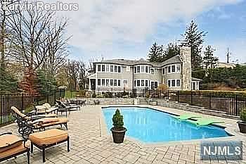 A custom built center hall colonial perched on professionally landscaped grounds with sweeping views of the NYC skyline. Designed with help from a feng sui master, you can't miss the wonderful flow and views across three horizons. You enter the home through a dramatic 2-story paneled hall with curved staircase. Spacious rooms with high ceilings and custom millwork envelop the first floor. The gourmet kitchen features custom cherry cabinets, leather finished granite counters and a large center island with farmers sink and stool seating area. Upstairs bedrooms include a huge master suite with city skyline view, spacious bath and incredible walk-in closet. Two family bedrooms also have city views. The grounds include a multi-tiered back yard with two patios, outdoor kitchen, large flat lawn, and gunite pool with salt water filtration and full sun exposure.