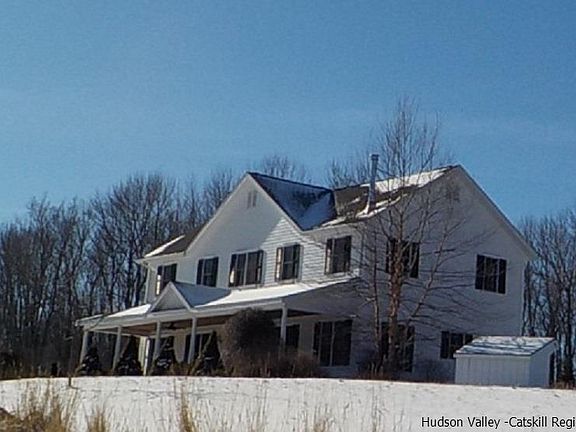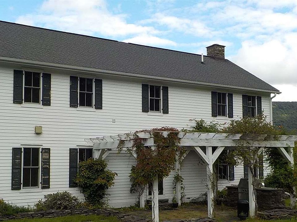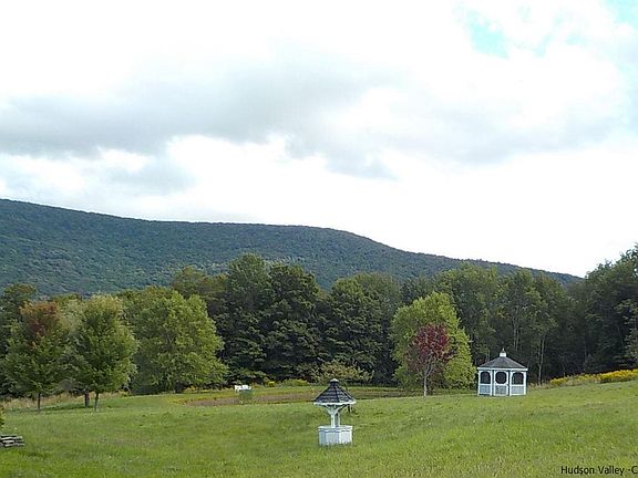 Private and gated, Large 3750 SF colonial perched on a hill with mountain views on 7.11 acres. 3 Bedrooms 3 Baths with lots of charm. Kitchen is open and has breakfast bar open to backyard and dining area. Inside beautiful wood floors and wood trim and lots of custom upgrades. Gorgeous fireplace and lots of natural light. Outside has amazing mountain views, mature landscaping and it is tucked back on a long private driveway away from the road. Open porch and privacy, detached 2 car garage and gated driveway add to its charm. Roxbury Schools